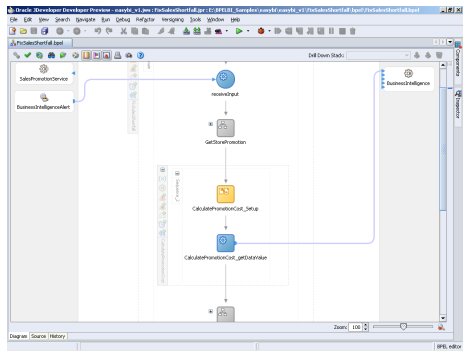 Another example is defining a business process around store promotions. The store promotion process, defined using BPEL, might itself be called from a business intelligence alert (an iBot, in BI Suite EE terms) that has determined that sales have fallen below a certain level. The BPEL process runs to process the store promotion, and accesses a BI web service to work out the likely cost of the promotion. These Web Services are provided by the BI Web element of BI Suite Enterprise Edition, which provides access to both requests (reports) and individual items in the Common Information Model as required.