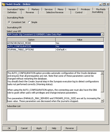 Then, you select one or more tables to be part of the CDC set, and then use the Designer application to start the journal. Taking a look at the steps ODI takes to create the journal, you can see that it sets up CDC, in the standard way that Oracle 9i and 10g supports it, creates subscriber tables and sets up the capture and publish processes - pretty much all the things I did manually in my previous article.