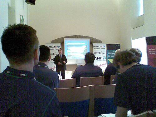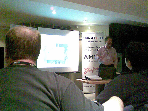 and another keynote from Graham Wood, comparing Oracle features (such as row-level locking and writers not blocking readers, as Mogens is demonstrating below) to Whisky.