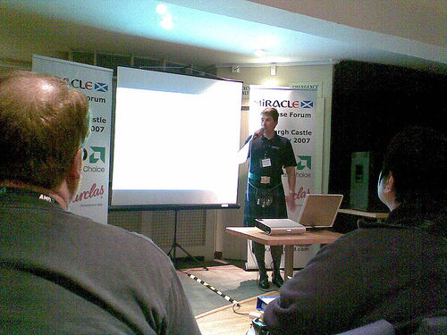I'm currently sitting in a pub just down from Edinburgh Castle, in a break between the morning and afternoon sessions. Just across the table from me is Doug Burns, and behind is Thomas Presslie and Carel-Jan Engel, who are working on the Miracle musical for tonight's gala dinner. We've slipped out for a cheeky one before the afternoon's presentations, and to update the blogs on yesterday's events.