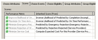 Next, we create the list of choices for the Inline Service to make, which in our case are the list of service providers that the decision service can choose from. Then, we create a number of predictive models, one for each metric ("on-time performance", "customer satisfaction" and so on), and then define performance goals which we then link to these metrics to to allow us to emphasize, for example, arriving on time, minimizing cost, only needing one visit to do the work and so on.