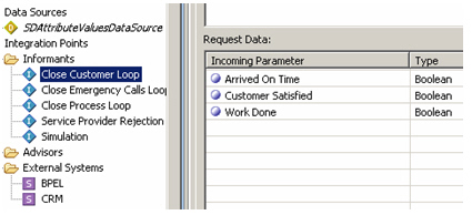 Then, "Informants" are created, which are the inputs into the predictive models that we'll create in a minute. Informants tell the Inline Service, for example, whether a supplier did the job within the required time, what the supplier scored in the subsequent customer survey, whether they rejected the job and so on. The BPEL process I'll create later on will provide values to these informants through BPEL variables.