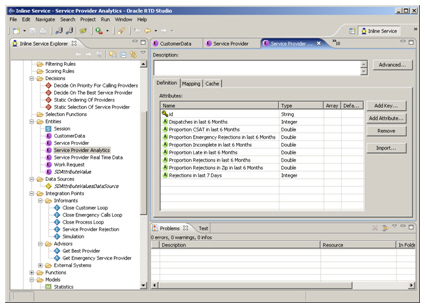 So, how is the decision model put together? Firstly, a new Inline Service is created using the RTD Design Center application, a customized version of Eclipse. Once the project is created, data sources are defined together with the internal data model - "entities" and "session variables" - that the Inline Service will use.