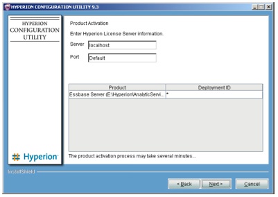 Hmmm. Strange. Ok, taking a look through the Essbase Administration Services install docs, I think I'm supposed to re-activate Essbase Server again, and re-register it with Shared Services (why?) I tick those options and press Next to move to the next page.