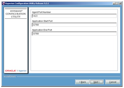 Press Next to move on to the next screen, I note down the Agent port number (1423), application start port (32768) and application end port (33768) and press Next to move on.