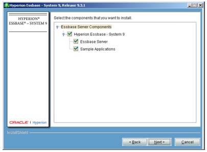 Installing Essbase is pretty much the same as installing Shared Services, you just choose between the typical and custom install and choose the components you want. I go for everything, which is the Essbase Server and the sample applications.