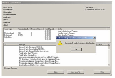 Going back to Integration Services Console, I select Outline > Member and Data Load to start the load process.