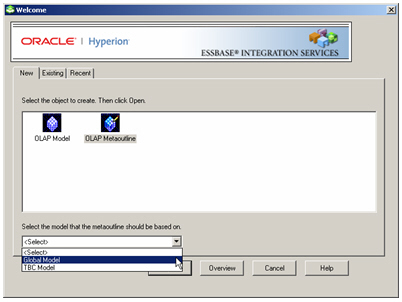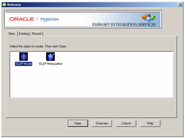 As the first step in building an Essbase cube using Integration Services is to build an OLAP Model, I select this option and press Open to start creating a new OLAP Model.