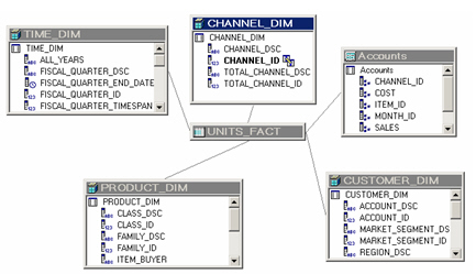 The first step is to locate your relational data source, which really should be a star or snowflake schema – if it’s not, the recommendation is that you stage it to get it into a denormalized, star schema format. Make sure it’s got foreign key links between the fact and dimension tables, and then either create an ODBC or Oracle Net connection to the schema or database. Also, a quick note on the Global schema – I had to remove the double quotes (“) from entries in the PRODUCT_DIM.ITEM_DSC column to get the cube to load properly, you’ll need to do this as well if you’re going to follow along with the example.