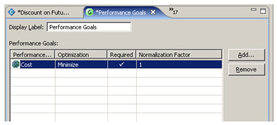 Next, I need to create some performance goals, by which we'll later on measure the various offers. The first performance goal is "Cost", and I'll set our objective to be to minimize this value.