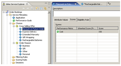 I then go through each of the cross-selling offers and assign a cost score to them, telling RTD that some offers cost our organization more to offer than others. These costings can be made conditional, so for example it might cost us less to offer an extended warranty to older customers, who claim less, than to others. Later on, I'll add Revenue in as another performance goal, and we'll score each option based on it's ability to contribute revenue.