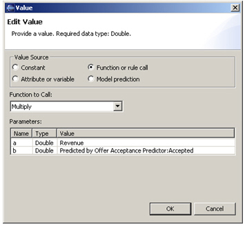 So far so good. The final step now is to use the offer acceptance prediction model to influence the cross-sell offer choice, so that offers that are more likely to be accepted have a higher chance of being picked by RTD to present to the customer. To show this working, I'm going to create a new metric, "Revenue", which I'm going to use in conjunction with the prediction model.