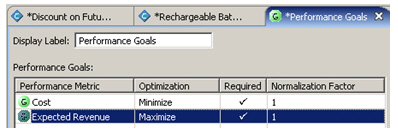 I then define an additional performance goal, "Expected Revenue", which I add to the existing "Minimize Cost" performance goal.