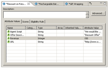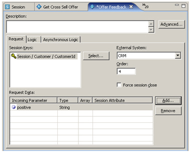 The advisor that presents the offer to the customer now records the offer selected in the session variable. Next I want to create another informant, this time to record the response from the customer.