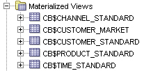 If I take a look down at the materialized view section though, I can see MVs for the dimensions, but not for the cube. What's happened here?