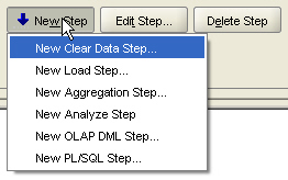 - "New OLAP DML Step", and "New PL/SQL Step", which lets me execute arbitrary OLAP DML or PL/SQL as part of the process.
