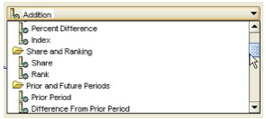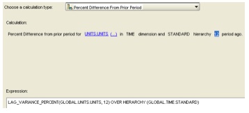 I select the percentage difference from prior period calculation, whereapon the dialog changes and reflects the chosen calculation: