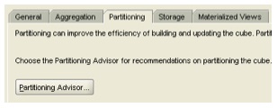 Going over to the Partitioning tab in the Cube dialog, I notice a new Partitioning Advisor button: