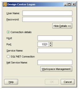 Starting up the Design Center, the logon dialog has had a slight change - it now says "Workspace Management" on the button that previously said "Get Started", which launched the Repository Assistant in 10gR2. Workspaces are obviously the equivalent of repositories, except they're all stored in a single schema called OWB_SYS. I press the Workspace Management button, which launches the Repository Assistant (perhaps this should be renamed "Workspace Assistant"?)