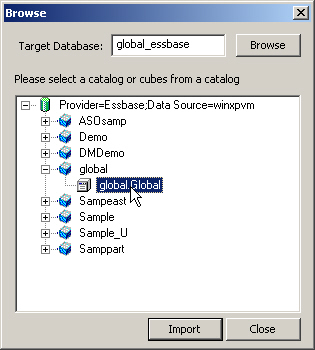 You will now be presented with a list of Essbase databases (cubes) that you can import. As I had previously set up the Global Electronics cube as an Essbase cube, I select this, press Import, and then let Oracle BI Administration read in the cube details.