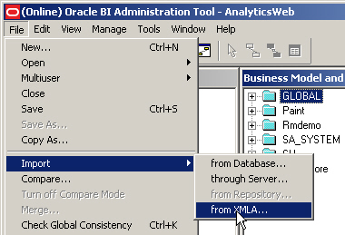 Anyway, once you have set up the registry entry, start up Oracle BI Administrator and connect to your repository.<./p>