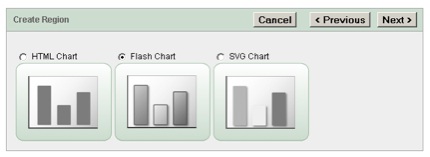 So what about the flash charts then? Well this is pretty straightforward, and I start off by adding another region to the page, this time of type Chart / Flash Chart.