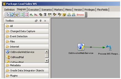 Anyway, the third bit of web services functionality in ODI is the ODIInvokeWebService tool, a bit of functionality you can invoke from the Package editor, analogous to process activities in OWB process flows.