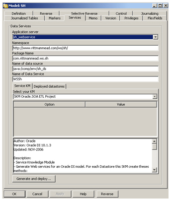 The technology behind this is contained in another type of knowledge module, a "Service Knowledge Module", that takes data in for instance an Oracle database and provides the interface over it. Once you've selected your tables and imported the required knowledge module, you then publish the service to, for example, Axis2 wherapon you can then check out the endpoint.