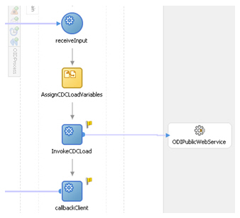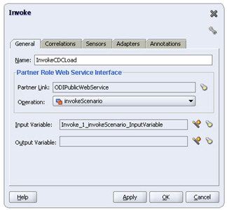 If you've read the recent OTN article I put together on BPEL and OBIEE, setting up ODI to work in this way is pretty similar. You add a reference to the ODI Public Web Service as a partner link in your BPEL process, then make calls to it using Invoke activities. When you add an Invoke activity that refers to the ODI Public Web Service you get a choice of three activities: