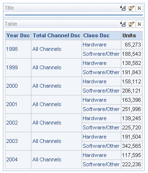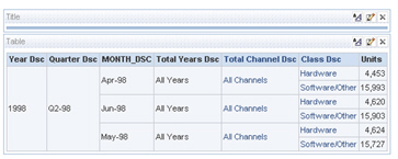 So there we go. The Oracle detail-level source is being used for detail-level queries, whilst the Analysis Services, aggregated source is being used for queries at a higher level of summarization, which OBIEE does because it knew where in the various dimensions the OLAP data mapped to when it brought it across.