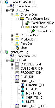 I put the cube together using the Analysis Services Analysis Manager and mapped it to my Oracle data source.