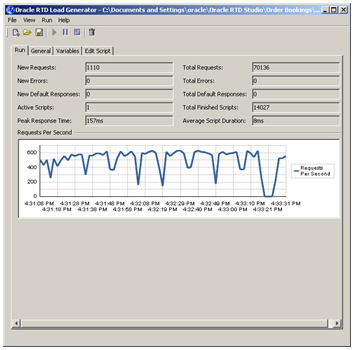 So now we're ready to go. RTD comes with a load generator that lets you define a script that passes values to the RTD decision process, where you can weight the input variables so that, for example, only 20% of customers are premium and 70% of deliveries happen on time. Running this load generator gives us some basic information to add to the model.