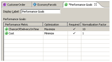 So now my model has two performance goals; one is static and is based on the price each charges, another evolves over time as we get actual feedback from each delivery on whether the delivery actually reached the customer on time. All that's left now is to go back to the decision I created earlier and include this new performance goal in the decision. For standard customers, I'll give equal weight to cost reduction and reliability maximization.