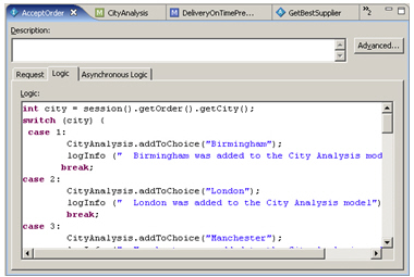 So that we can record what decision was actually made for this order, which we can tie back to the factors that defined the order, we add another bit of Java logic, this time to the Advisor, to record the decision.