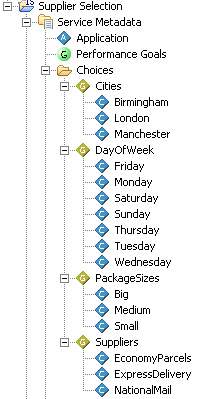 Now that we've got some inputs into the decision process, it's time to start setting out the choices that can be made. First of all is the list of delivery companies we can choose from, which we enumerate in the application under the heading of a "choice group".