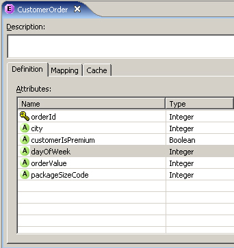This entity will allow RTD to consider the city that the order is being delivered to, whether the customer is a premium customer or not (so that we can treat them slightly differently), what day of week the order is placed, the value of the order and the size of the package, in case these factors turn out to influence the outcome of the delivery. When a decision needs to be made, the calling application will contact RTD, pass across the order ID and these bits of information, and they'll then be persisted in RTD until the decision process is complete.