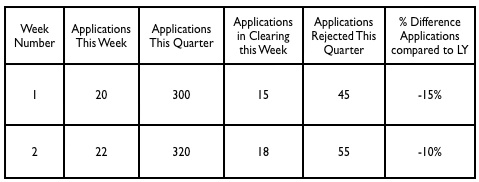 The way I've got around this on other OBIEE projects is firstly, to break out each measure by application status and have it listed in the logical fact table, and create additional measures that take your base measures and calculate it over specific time periods, such as month-to-date, year-to-date, year-on-year comparison, and so on. This has the drawback of "exploding" your fact table model from one or two measures to one per status and time period, but it gives you a particular column you can select for each combination of measure, period and status, with the complexity of populating them handled by SQL DECODES and the Time Series (AGO and TODATE) calculations you now get with OBIEE 10.1.3.2 onwards. What this all leads to is a logical model that looks something like this: