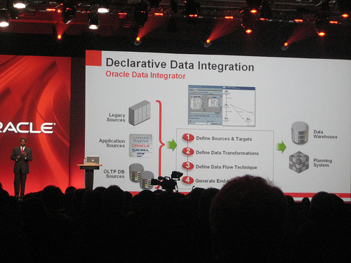 The other interesting thing yesterday was Thomas Kurian's keynote, although I did have to sit through a tedious one hour infomercial from Intel beforehand before he came on. What was interesting about Thomas' keynote was the fact that the first hour or so was all around BI and EPM, starting off with Oracle Data Integrator....