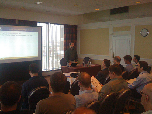 Following on from Craig was Edward Roske, one of our "guests of honour" who came over to the event all the way from Texas. Edward is an Oracle ACE Director and CEO of InterRel, one of the USA's leading Hyperion implementors, and he took us through a low-level explanation of the internals of Essbase and how you optimize cube designs. For me, Edward's explanation of Aggregate Storage and how now, it should be the default storage option from 11.1.1.1 onwards was the most valuable part, and I was particularly grateful for Edward presenting at what for him would have been 2.30 in the morning!