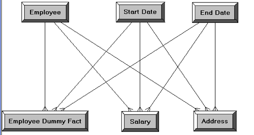 What about if you only want to see the Salary periods? The only way to get this to work is to model the Employee Name in the Employee dimension instead of the dummy fact. Unfortunately this approach will cause the test requirement to generate invalid results as the Start/End Date filter will not be applied to the Employee data as we would not be including any attributes from the Employee dummy fact. It seems undesirable to include the Employee Name in both the dimension and dummy fact as this will be confusing to the user.