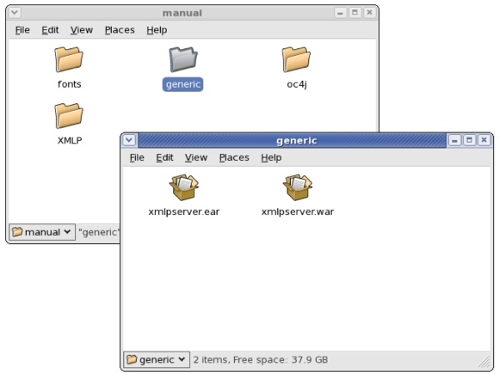 To do this unpacking, I need to create a folder within the server filevstructure that will hold the deployed application. I create this as /u01/app/oracle/product/xmlpserver, and copy the xmlpserver.war file from the manual/generic folder to this new folder, like this: