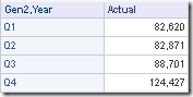 If we look at the MDX for the above query, you would notice 2 different MDX queries being fired simultaneously. The first query would be to fetch the Actual values (Same as the one above) and the other would be for Budget. The Budget MDX would hit the right intersections and its MDX is given below