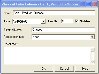 Enter Gen1, Product – Ounces as the Column name. In the external name enter Ounces as shown below