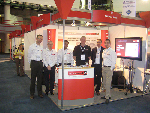 This year we've brought most of the consulting team along to the conference, as a way of getting to see people who are often working away on-site, and so that everyone can get to meet the great delegates, speakers and partners at the conference. Here's the team at the start of the day, having just set up the demo and waiting for the opening of the exhibition.