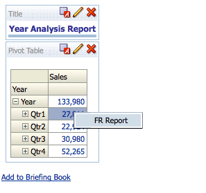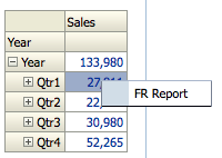 Now we should have the action link enabled on the Sales column. By clicking on the FR Report link, the parameters will get passed from BI EE to HFR automatically. With the above approach, there is no SSO between BI EE and EPM. So, the username and passwords will have to be entered again.