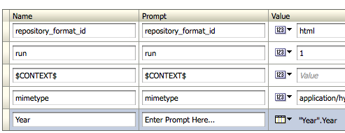 Add a new Parameter called Year which is what we will be passing from BI EE to HFR. Make the Year value to be passed from the Year column