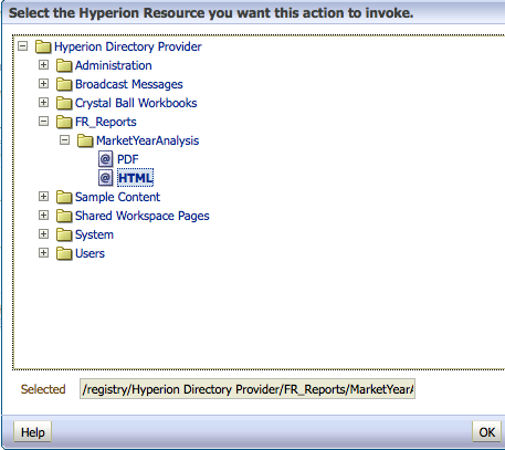 This will basically open up the EPM catalog. Lets choose our target FR report.