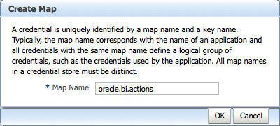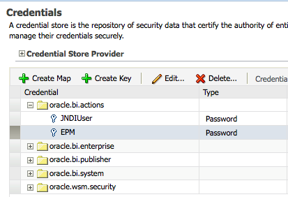 In the Credentials page, create a new Credential Map called oracle.bi.actions (if it does not exist already).