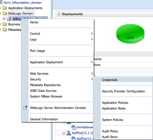 In the above registry XML entry, you will notice that we are using an account called EPM. This is nothing but a pointer to an actual account in the Weblogic Credential framework. So, we need to navigate to the Credentials page in the BI EE FMW Control (http://localhost:7001/em) and setup the EPM account.