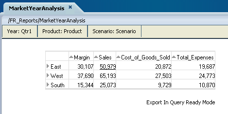 As you see, the Qtr1 value that was passed from BI EE has now set the context in FR. The same can be done for Planning forms, Web Analysis reports etc. I will cover the Planning forms integration with BI EE in a future post.